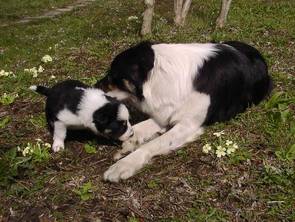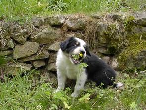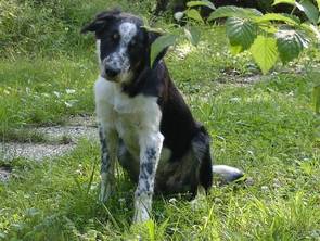 Ja, und die wurden in den letzten Jahren von einer Bordercollie-Hündin gehütet, die auch beim jährlichen Almabtrieb die Hauptarbeit des zusammen Suchens erledigt hat. Diese sehr feine Hündin kam direkt aus Irland, war schon der zweite BorderCollie des Besitzers, der wohl durchaus als erfahren gelten kann. Aber die Hündin wurde eben alt und nun ist eine Lücke zu füllen.