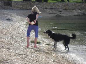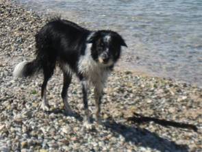 Und da es ja nicht mehr sehr kalt war, waren Spiele am Meer angesagt. Bogi hat sich auch am Meer als rechte Wasserratte entpuppt, wie ich erfuhr. Nun, er war ja schon bei uns in jedem Bach - BorderCollies halt :-)