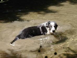 So wie heute, an diesem superheissen Samstag - gemeinsam mit Boggi (Bogdan) ziehn wir durch den Wald, plantschen im Bach und letzlich wird noch unser Hausteich auf "Welpenverträglichkeit" getestet.