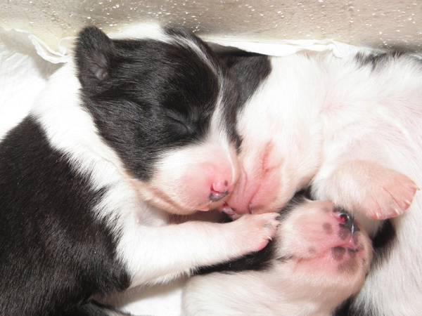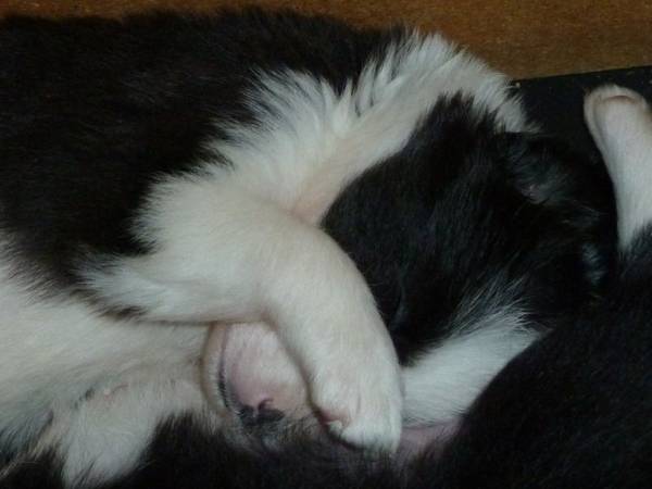 Jetzt warten wir, dass sich in den nächsten Tagen die Äuglein öffnen, denn dann wird sehr bald auf festes Futter umgestellt. Das wird eine Freude, wenn der Erste Welpe frisst - wenn ich bis dahin nicht im Tiefschlaf liege.