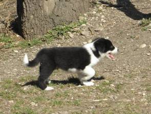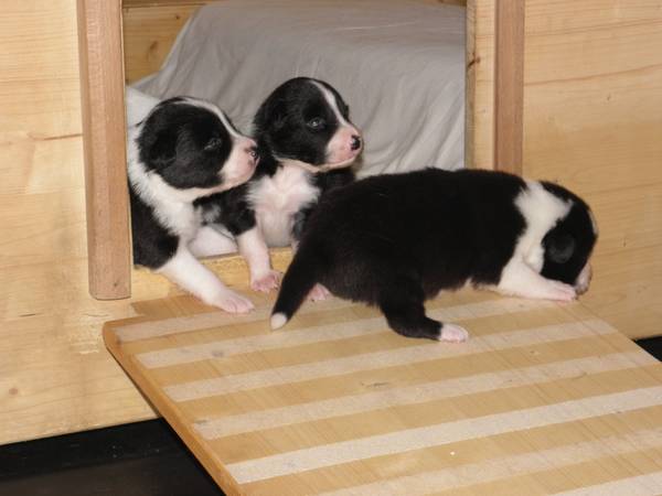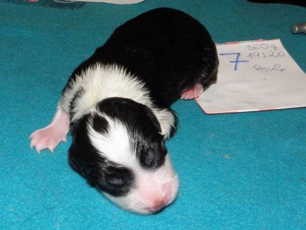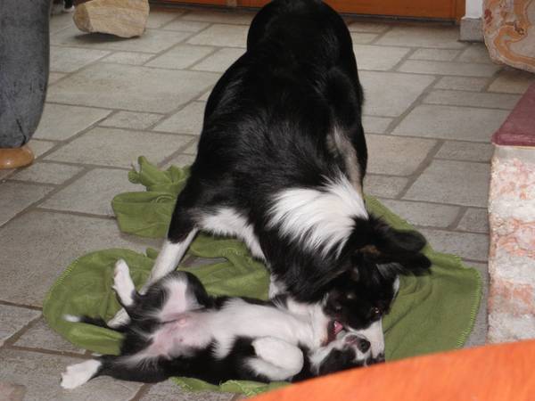 In farblicher Hinsicht gab es auch kaum Unerwartetes - schwarz/weis, tricolor und mit Eisa "seal" (schreibt man das so??) war die diesmal eher begrenzte Farbpalette - ganz anders als bei Albenas erstem Wurf der "bunten Hunde".