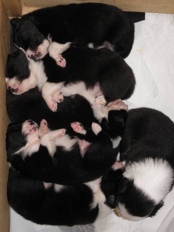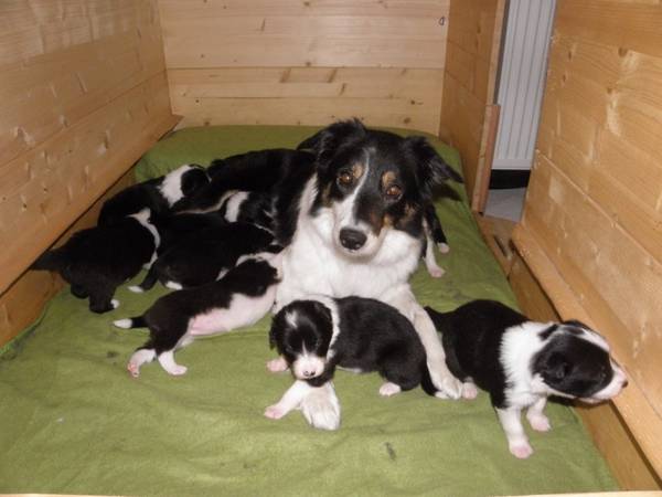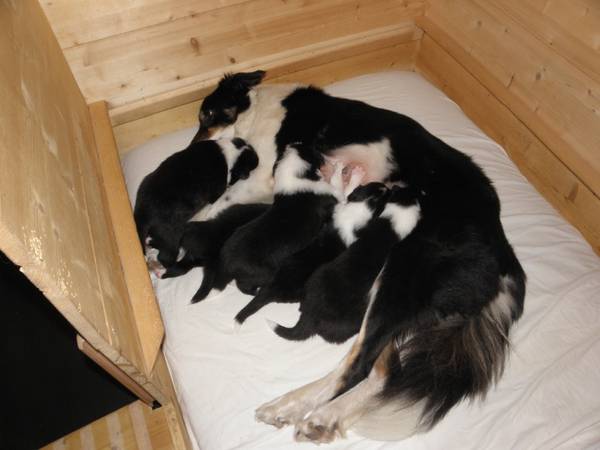 Am 25. Jänner 2011 warf Albena vom sonnigen Garten nach T-Blue 8 gesunde Welpen, 5 Rüden, 3 Hündinnen, alle schwarz/tricolor.