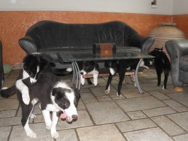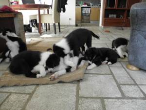 Aber so ist es nun mal - sieben Welplinge, sieben BORDER COLLIE Welplinge mit immerhin schon 9 Wochen! Und dann aus Arbeitslinien! Ihr könnt Euch kaum vorstellen, was da manchmal abgeht!