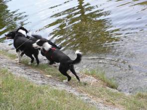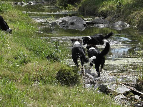 Und unsere Wautzies, die lagen nachher im Wohnzimmer, ungefähr so schlapp wie ein Stück Leber. ![]() Another Day for the ESpätsommer – nicht mehr Badewetter aber schööön! Und ideal für kleine Border Collies die Bienen im Hintern haben – sozusagen. Da kann man herumtollen, ohne gleich nen Hitzeschlag zu bekommen und trotzdem ist es warm genug, dass Frauchen/Herrchen später im Auto mit den nassen Fellmonstern nicht die Scheibenwischer nach innen verlegen müssen, weil alles angelaufen ist.
