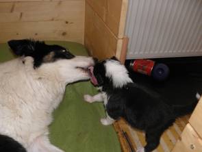 ![]() WurfabnahmeAm 25. März 2011 hat Frau Margit Brenner, ihres Zeichens Präsident des Clubs der britischen Hütehunde und Zuchtwart die Wurfabnahme unseres E-Wurfes vorgenommen.