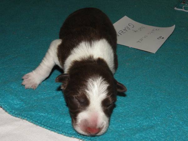GraziaIn zartem Glanz leuchtet unser Mädchen Fell, etwas zarter ihr Körper als der ihrer Schwesterchen Galina, doch kräftig genug. Das schöne Köpfchen hübsch gezeichnet - ein süßes kleines Welpenmädchen.