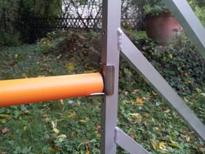 Einhängbare Stangenauflagen aus Edelstahl Kurze, abgerundete Auflage zur bei dieser Type weitgehendsten reduzieren des Verletzungsrisikos.