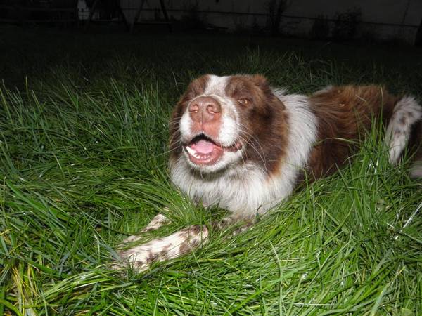 Da Bora Rotträgerin ist und ebenso wie der rote Fox Motteln hat, werden ihre Jungen ganz sicher sehr hübsche rote und recht unverwechselbare weil lebhaft gemottelte Hunde sein ;-)