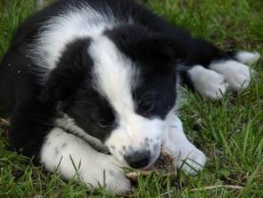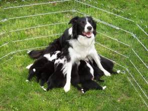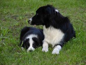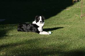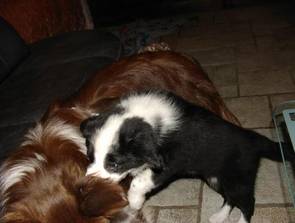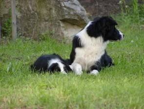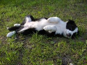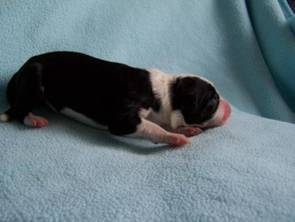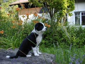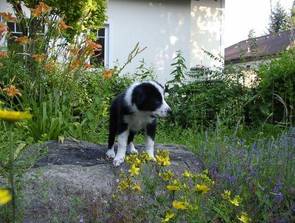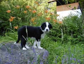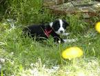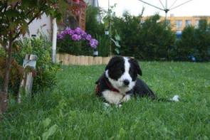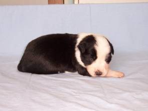Das hübsche schwarz-weisse Mädchen erblickte am 29. April das Licht der Welt, nunist sie schon sechs KG schwer und ein recht selbstsändiges kleines Wesen. Sie und ihre sieben Geschwisterchen sind die Nachkommen unseres Cedric und der Hündin Heavenly Casey Black Cheevers aus dem Zwinger Shadow Flame.