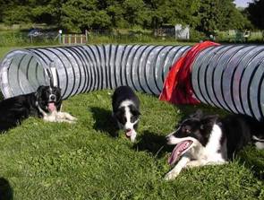 Unser erster Ausflug zum Agility-Platz. Kein Gitter hält die kleine Raja. Jedesmal, wenn ich mit Lyra oder Cedric losspurtete war Raja mit dabei. Hurtig, die Kleine.