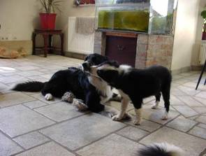 Bei uns lernt Raja nicht nur, wie man sich in einem Rudel richtig einordnet und verhält, was für sie später einmal nützlich sein wird, sondern sie wird auch gleich ein wenig erzogen. So beginnen wir ihr Stubenreinheit zu lernen, was bisher ganz einfach war und natürlich wird sie lernen, auf ihren neuen Namen und deutsche Wörter zu hören.