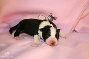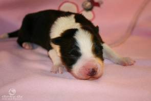 ![]() Alea - ihr erster Tag auf dieser Welt.Nun erreichen uns hübsche Bilder von Alea, gemacht von der "Haus & Hof Fotografin" Sigrid´s, von Jenny Ludwig, selber Züchterin, aber von Aussie´s.