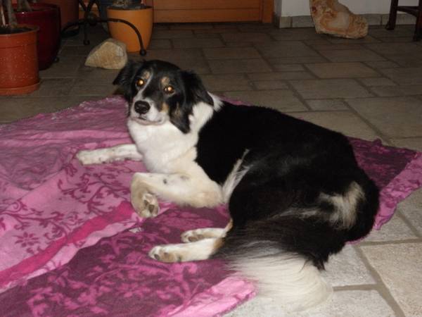 Geb: 05-Juni-07 CEA, PRA, KAT frei, (21. Okt 2008) CEA, PRA, KAT frei (12. Juni 2010) CEA/CH genetisch normal bei Optigen #: 09-1233 (23.02.2009) HD-A, ED frei, (10.Sept. 2008) OCD-frei (22. Jan.2009) frei vom MDR1-Defekt (Ivermectin-Unverträglichkeit) (14.2.2009) Farbe: Schwarz/Tricolor