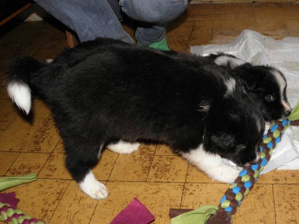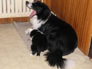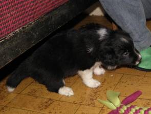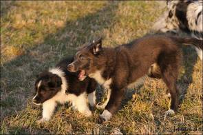 Deswegen und um die Möglichkeit zu haben, die Entwicklung dieser Zucht zu verfolgen, werden wir aus dieser Verpaarung einen Welpen zu uns holen und hier an einen eindeutig auf Sport ausgelegten und - für dieses doch als sehr triebhaft zu erwartende Tier – im Umgang mit Border Collies erfahrenen Platz vergeben wo sich diese Talente gut gelenkt entfalten können. ![]() ![]() ![]() ...und wachsen!![]() Schon zwei Wochen alt sind nun Aslan´s jüngste Sprößlinge und sie gedeihen prächtig.