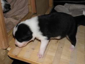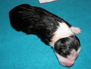 In farblicher Hinsicht gab es auch kaum Unerwartetes - schwarz/weis, tricolor und mit Eisa "seal" (schreibt man das so??) war die diesmal eher begrenzte Farbpalette - ganz anders als bei Albenas erstem Wurf der "bunten Hunde".