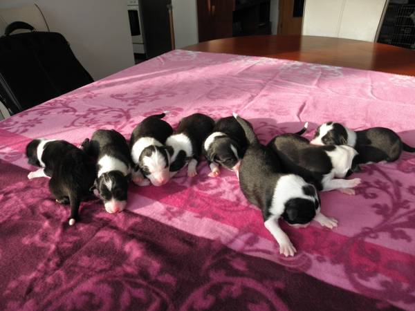 Am 25. Jänner 2011 warf Albena vom sonnigen Garten nach T-Blue 8 gesunde Welpen, 5 Rüden, 3 Hündinnen, alle schwarz/tricolor.