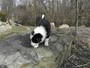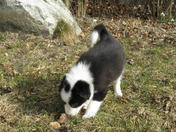 Wesen (Teil1) Eisa ist ein sehr aufgewecktes kleines Wesen, sehr umtriebig, sehr aktiv. Mit ihren Geschwistern kann sie nicht so recht, mag lieber ihre Ruhe haben und alleine auf Expedition gehen. Eisa ist wie ihre Mutter recht stur, dass ist schon jetzt klar. Auch sie wird sich später anderen Hunden, egal welchen Geschlechtes, nicht unterordnen. An die Flasche geht Eisa auch nur, wann es ihr passt – oftmals muss sie angeboten werden, bis sie sich herab läßt, daraus zu trinken. Dann jedoch gibt sie sie nicht mehr her, hat eine solche Saugkraft, dass man tatsächlich Gewalt anwenden muss, um den Nuckel zu befreien. Eisa wird nach meinen derzeitigen Beobachtungen eher für einen Einzelplatz sein, wo sie ihrem Menschen auf Schritt und Tritt folgt und ein wachsamer Schatten wird – andere Hunde wird sie zu unterdrücken oder zu verscheuchen suchen. So wie ihre Mutter. Und sie wird stets Energie geladen sein – auch so wie ihre Mutter. ![]() ![]() ![]() ![]() 2 Wochen - und ein Sonnentag![]() ![]() ![]() ![]() ![]() ![]() ![]() ![]() 4 Wochen, Fotosession![]() Was für ein Tier! Selten hat mich ein Welpe so beschäftigt wie dieses kleine Wesen.