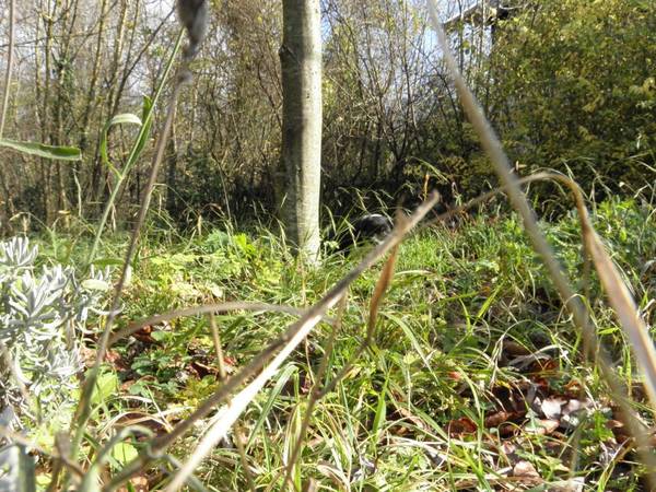 Hedera Helix ist der Name des immergrünen Efeu, den wohl jeder kennt. Aber nur die Besucher unserer Webseite werden vielleicht wissen, dass in unserem Garten ein riesiger, freistehender Efeu wächst, ein richtiger Baum mit gewaltigem Stamm und mächtiger Krone – der einzige Efeu-Baum weltweit unseres Wissens nach und bald 200 Jahre alt. Dieser Efeu blüht beinahe ständig, wird von Millionen Bienen, Hummeln, Wespen besucht, trägt viele Vogelnester – kurz: er ist ein Hort des Lebens und als einziger lebendig grün auch im tiefsten Winter. Vielleicht deswegen ist Mutter LeeLoo´s Lieblingsplatz tagaus, tagein in der Höhle unter diesem Efeu.